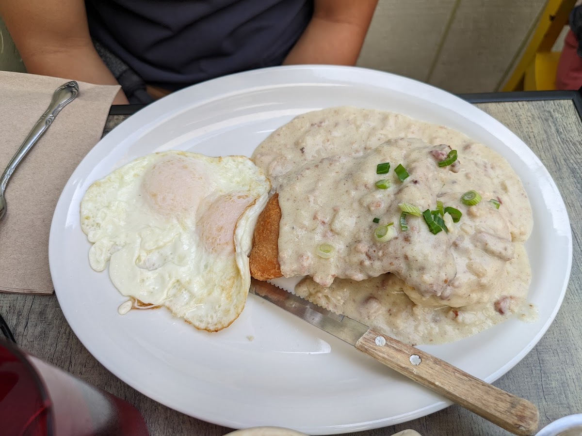 If breakfast is on your mind, do not miss the Biscuit & Gravy, where fluffy biscuits are smothered in rich pork sausage gravy, complemented beautifully by a side of two eggs any style. For a lighter experience, the Succotash Omelette filled with corn, zucchini, and sweet peppers is sure to tantalize your taste buds.